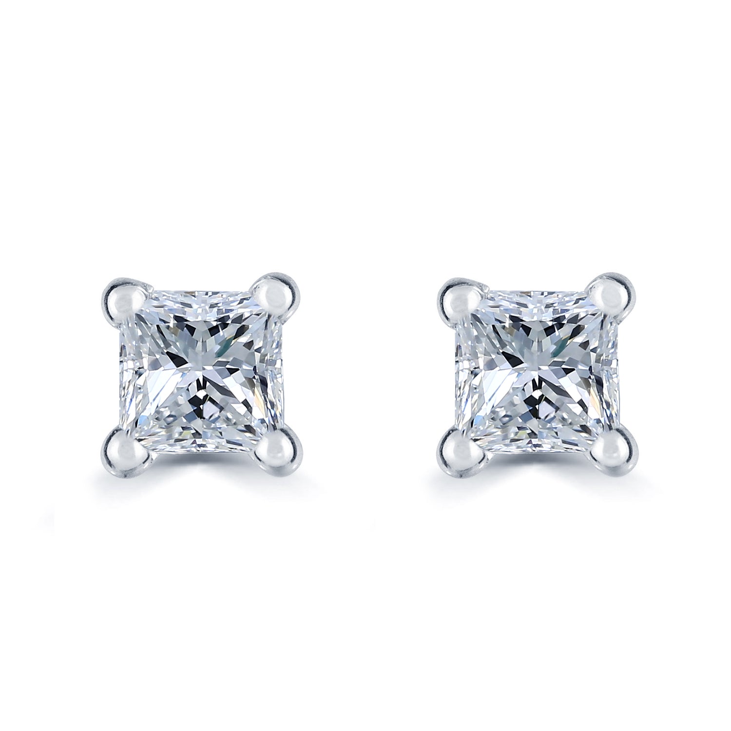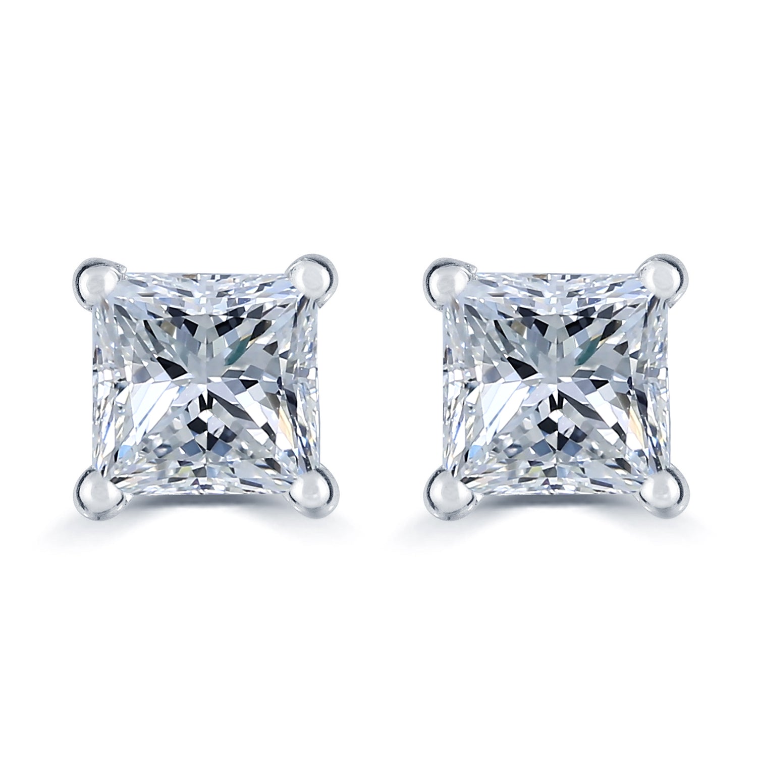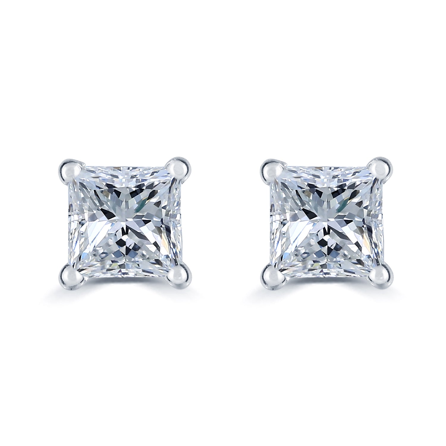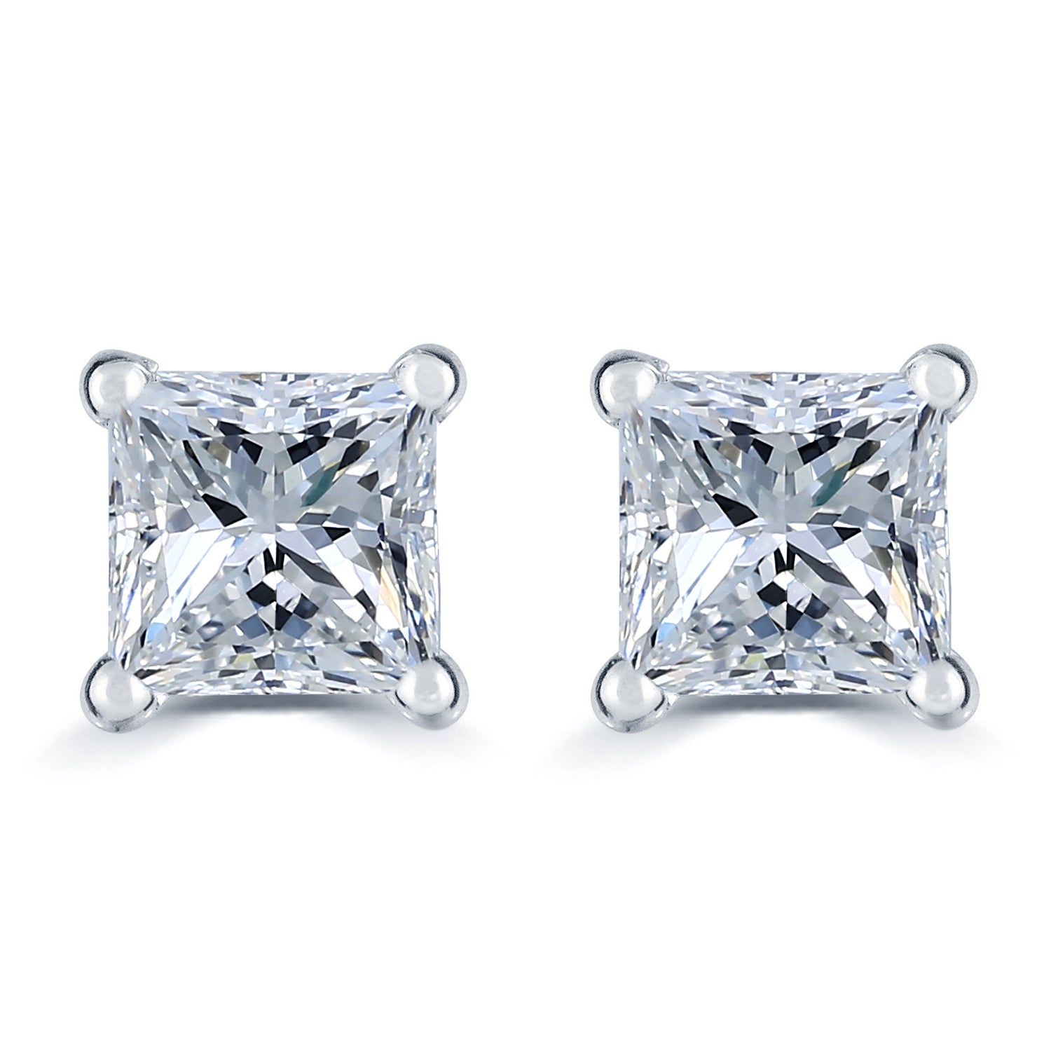 Certified (VS1- VS2) 1/4ct TW to 1.00ct TW Natural Diamond Princess Cut Earrings 14K Gold