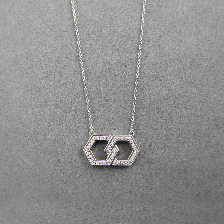 1/4 Cttw Diamond Double Link Infinity Hexagon Pendant Necklace set in 925 Sterling Silver