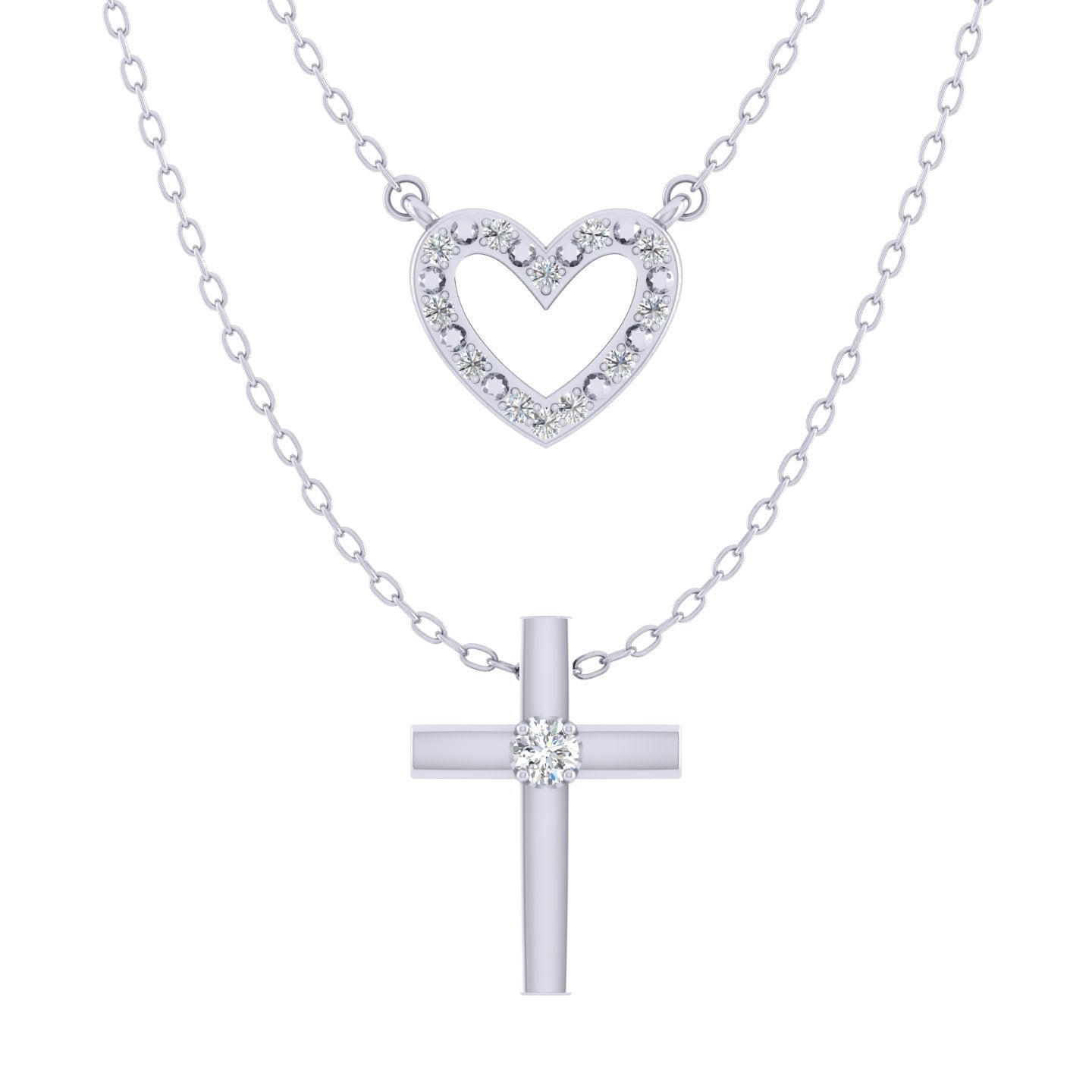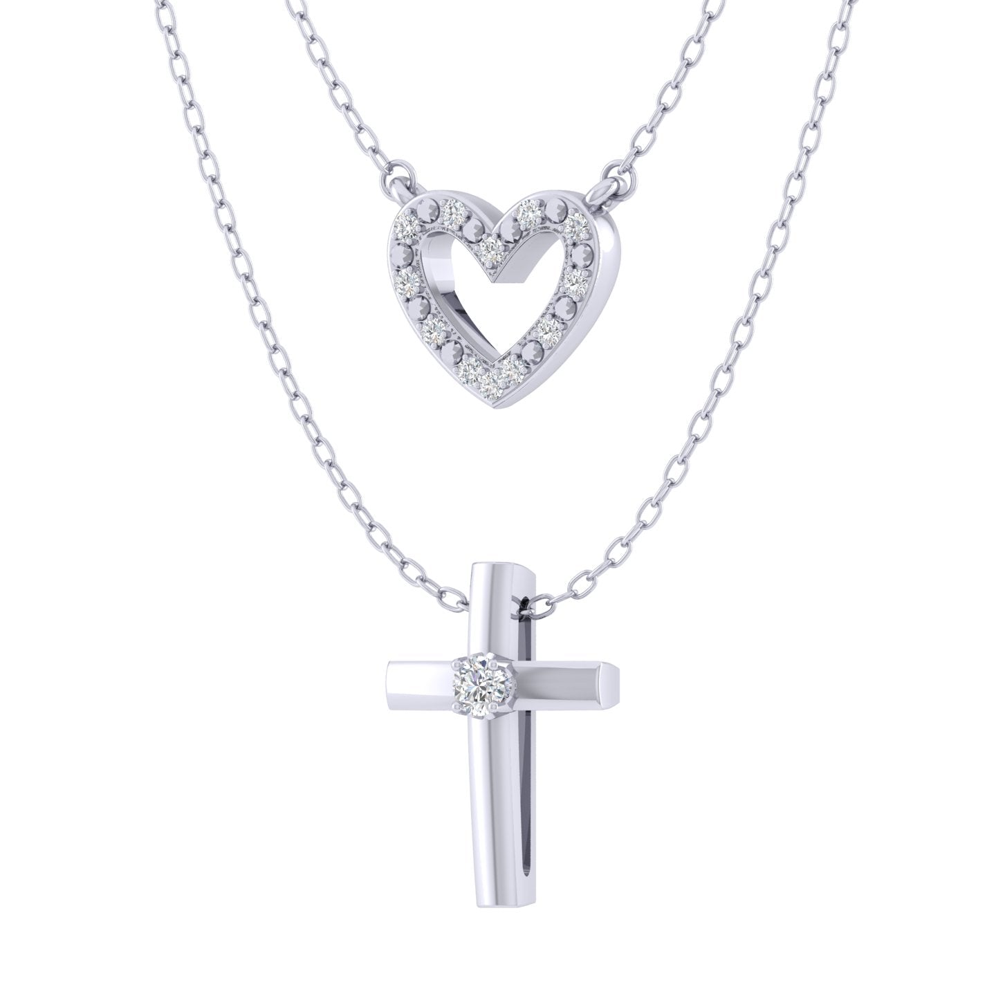 Heart and Cross Layered 1/10 Cttw Natural Diamond Pendant Necklace set in 925 Sterling Silver…