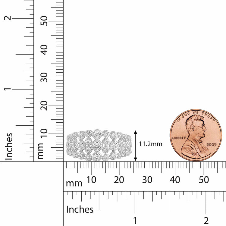 Celebrate your love with this stunning sterling silver diamond anniversary ring. This beautiful ring features 1.00 Ct of round brilliant set in three rows for larger grander look.