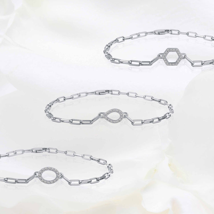 1/5 - 1/6 Cttw Natural Diamond Pave Link Chain 7" Bracelet in 925 Sterling Silver (Select Design)