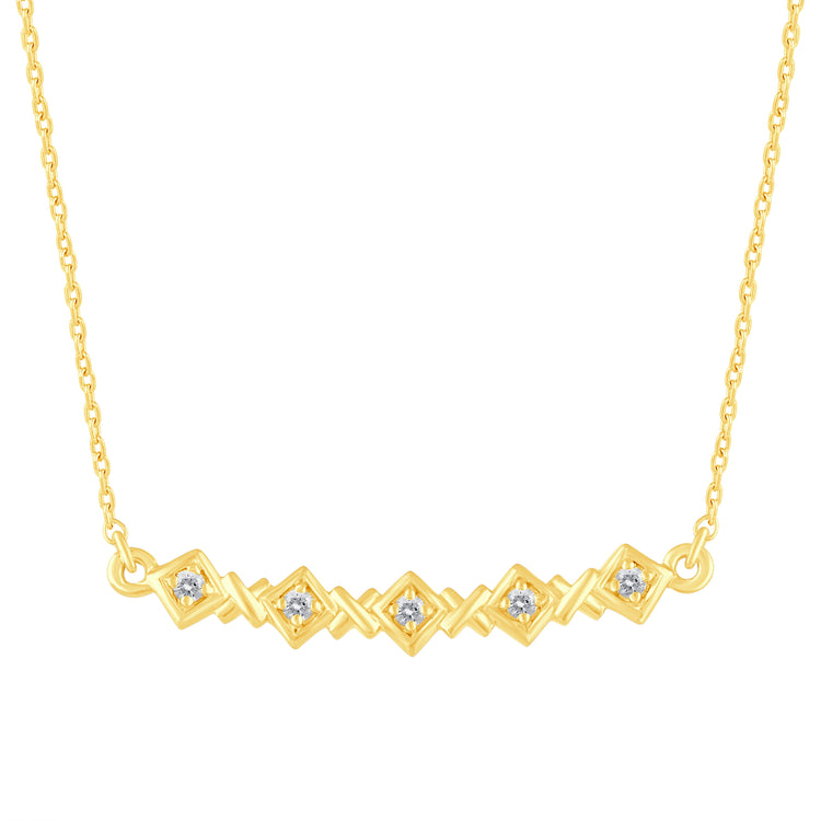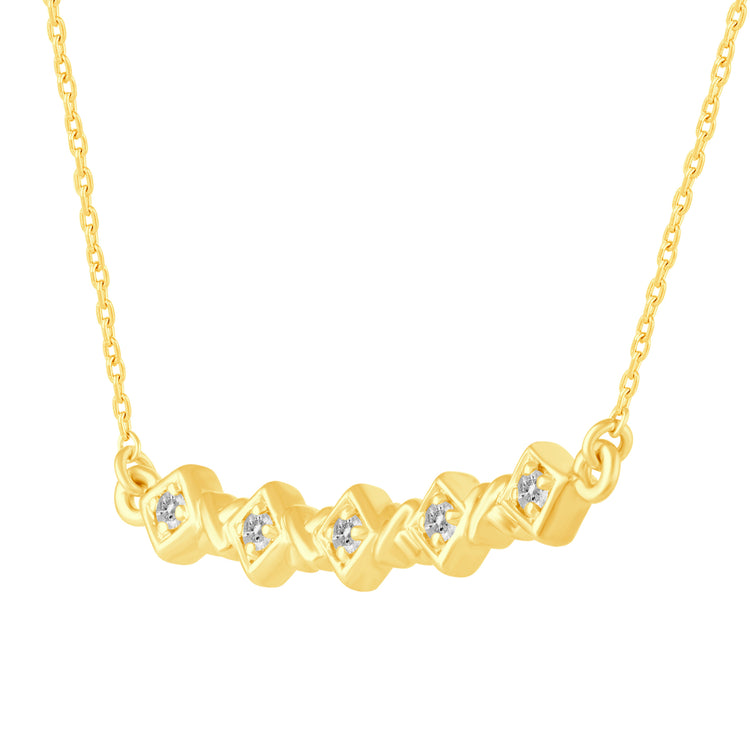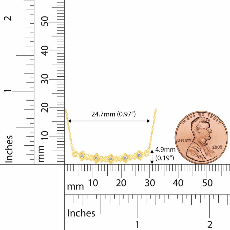 1/10 Cttw Diamond Square XO Bar Pendant Necklace set in 925 Sterling Silver Yellow Gold Plating