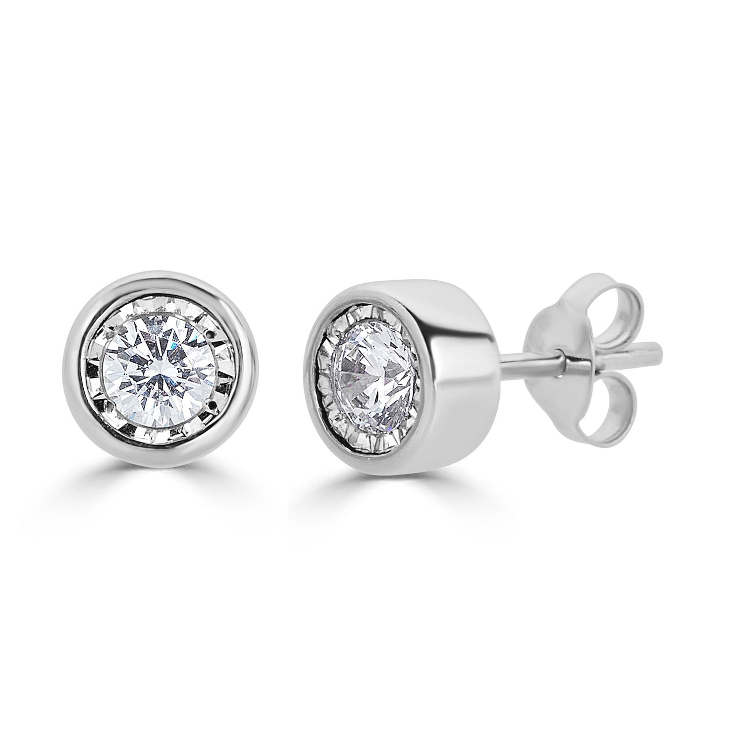 The Perfect Bezel earrings with a classic versatile design that delivers a subtle yet fashion forward trend statement. I2-I3 Clarity Diamond