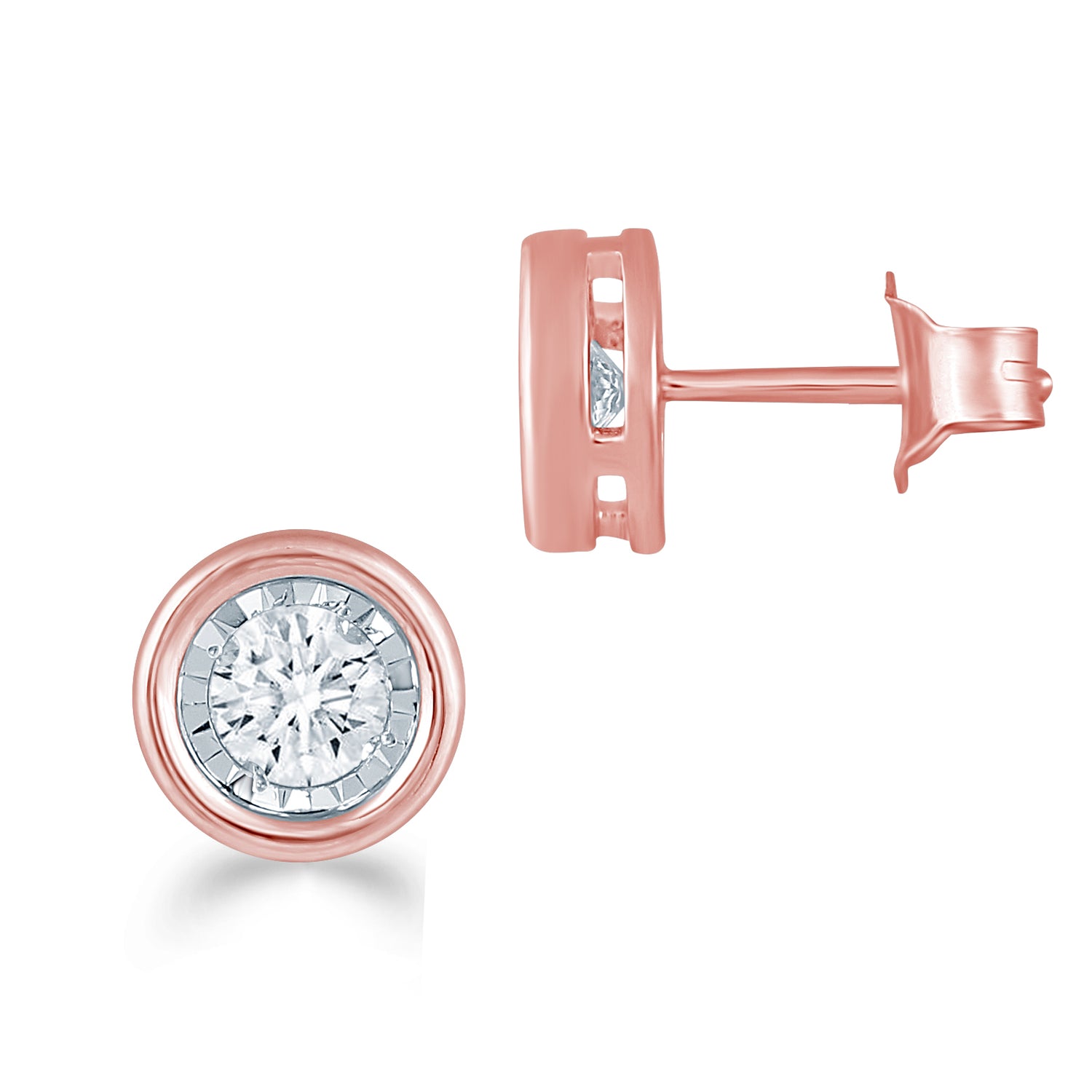1/2 - 1/4 Cttw 14K Gold Bezel Set (I2-I3 Clarity) Round Natural Diamond Stud Earrings