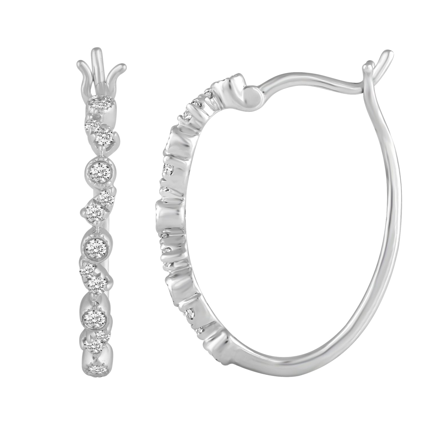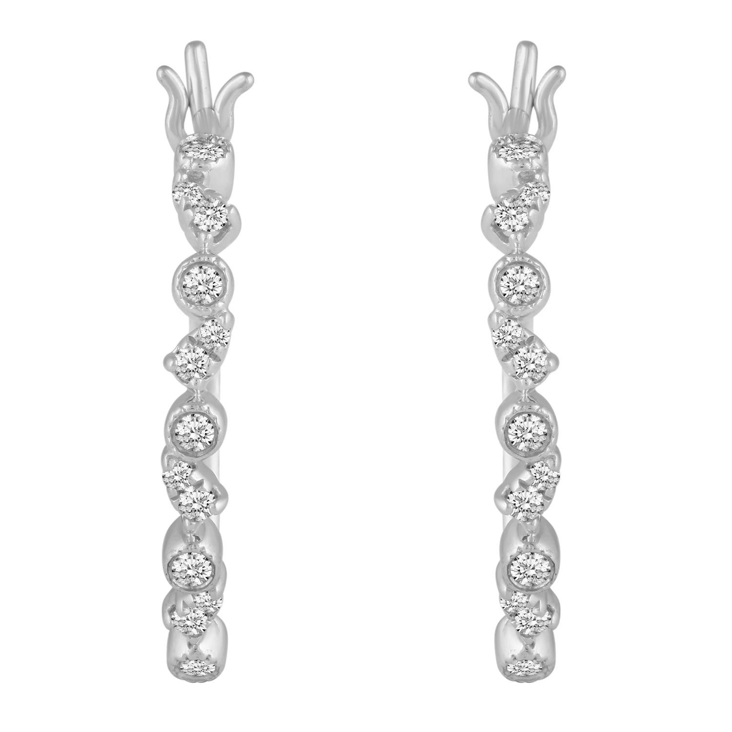 1/4ct tw Diamond Beaded Hoop Earrings in 10K White gold