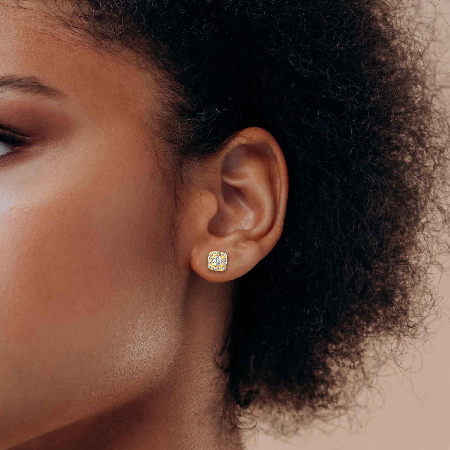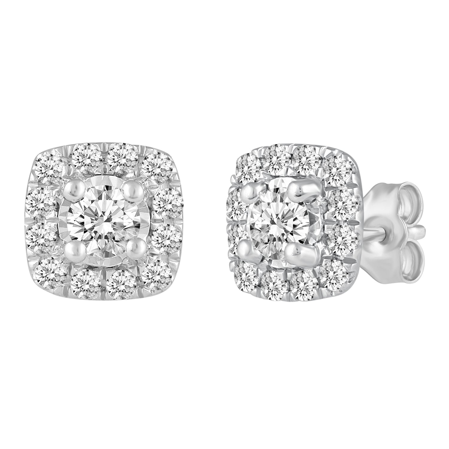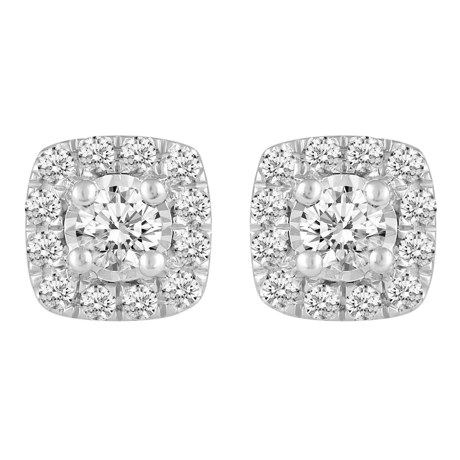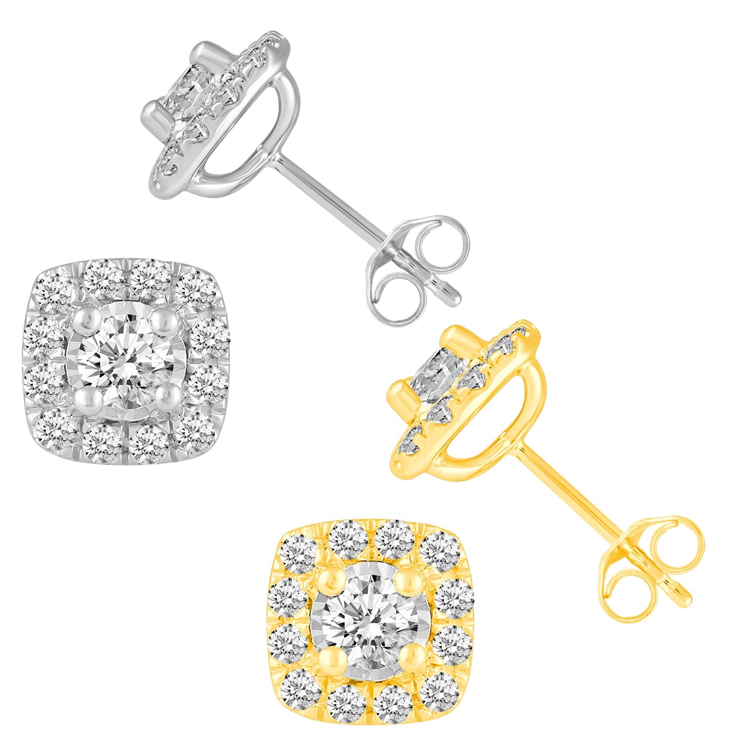 Royal Aura 14K Yellow/White Gold 1 Cttw (I1 Clarity) Diamond Halo Studs Earrings