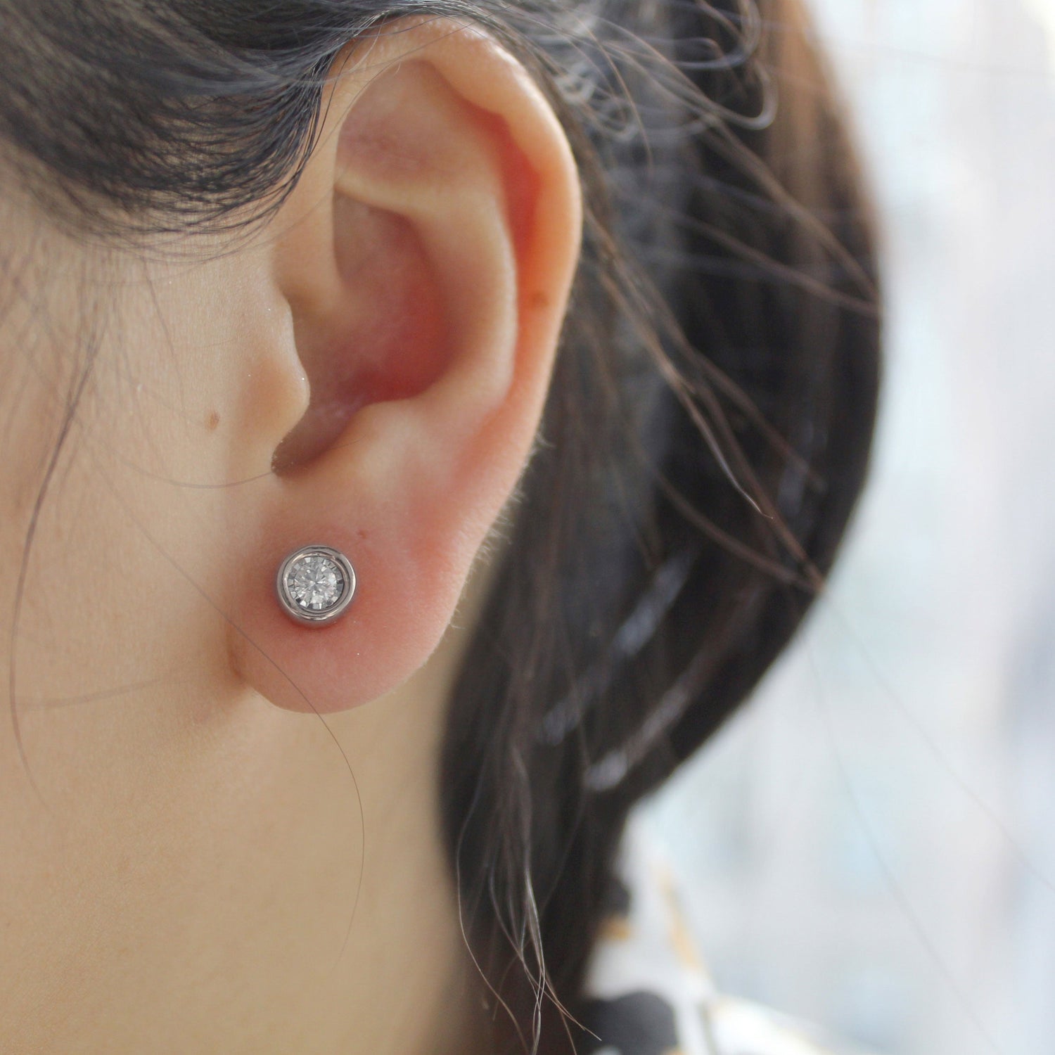 SINGLE 1/2 - 1/4 Cttw 14K Gold Bezel Set (I2-I3 Clarity)Round Natural Diamond Stud Earrings
