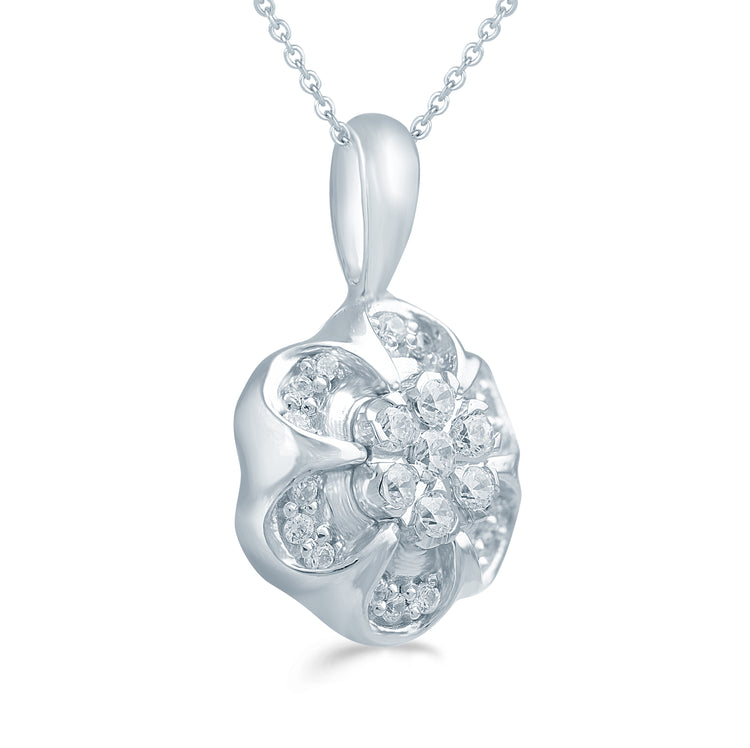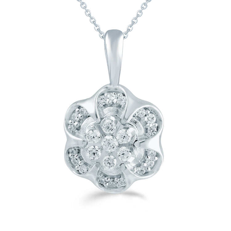 1/6CT TW Diamond Flower Cluster Fashion Pendant in Sterling Silver
