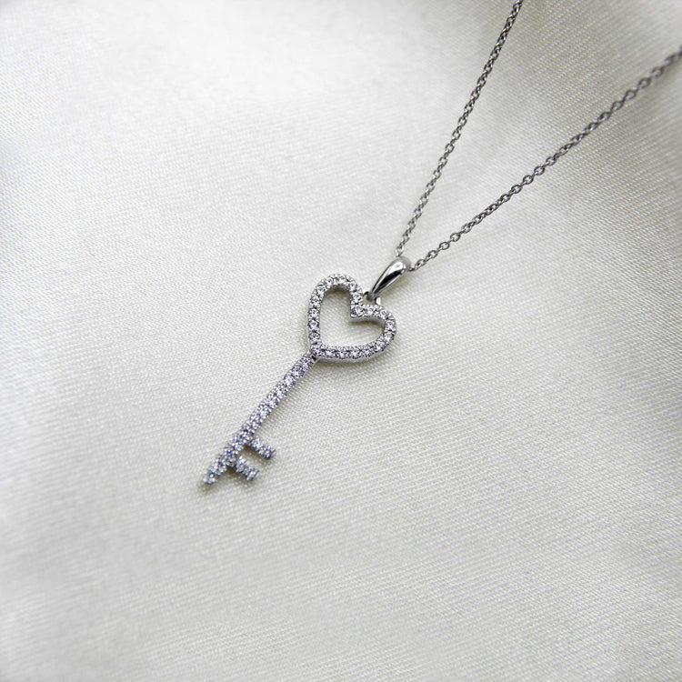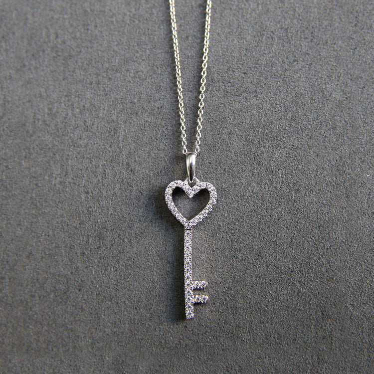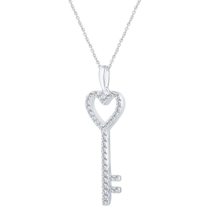 10K White Gold 1/4 Carat TW Round (I2 Clarity) Diamond Key Heart Pendant Necklace