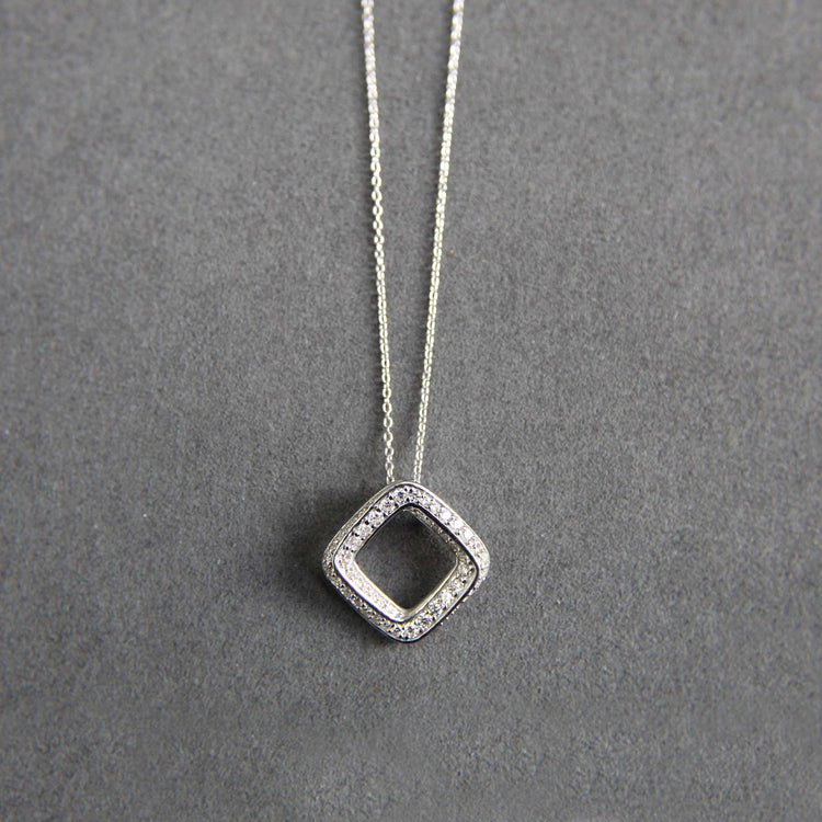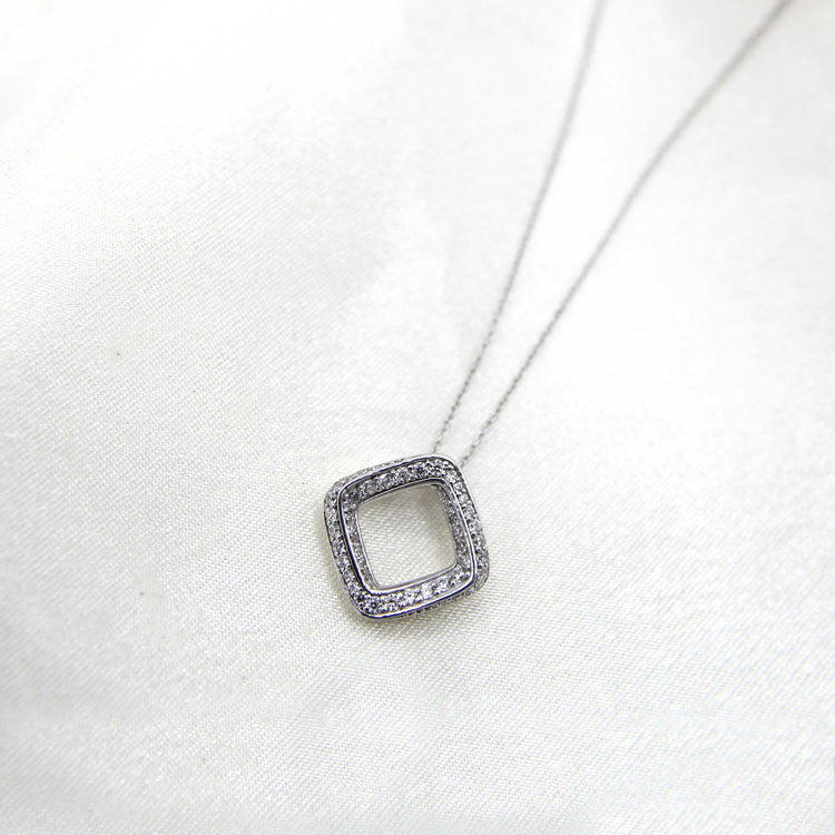1/2 Cttw Diamond Open Square Pave Twisted Pendant Necklace set in 925 Sterling Silver